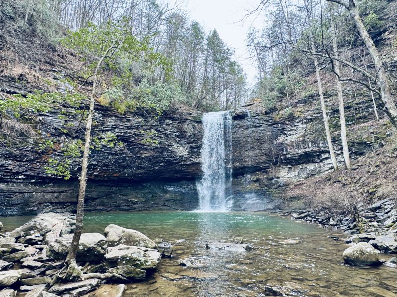 It's the ideal time of year to explore this treasure called Cloudland Canyon, one of the most popular State Parks in Georgia! The plan is to meet at the parking lot at 08:15, get to know each other, and by 08:30, head out to the main overlook for a panoramic view of the canyon. Then we'll pick up the West Rim Trail which takes us along the (you guessed it!) West Rim for some more spectacular views of the Canyon, before doubling back at the northernmost point and heading southbound to Cherokee Falls and Hemlock Falls. Typically in March/April, the trail may have some muddy spots and rocky areas, with high water levels making the waterfalls more impressive." Nice! After a quick hydration and refreshment break at the falls, we head back up the incline/stairs to the parking lot.