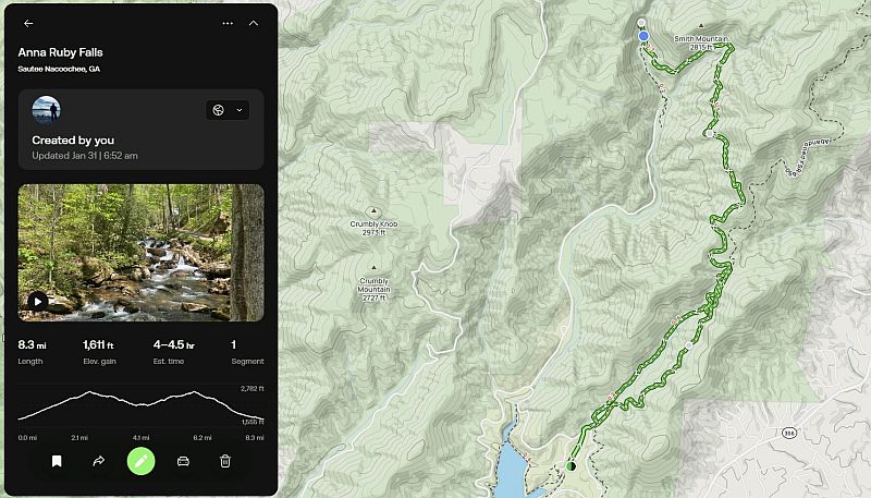 Come join us on this 25th anniversary edition of the hike that started it all! The very first AOC hike was led by the club's founder Amy Pickwick on April 14, 2001, to Anna Ruby Falls. Amy recalls that the hike was "...a standard route from a main parking lot out and back" so we'll assume they departed from, and returned to, Unicoi State Park, and that is exactly what we will do. From the parking lot at Unicoi, we'll pick up the Smith Creek trail, which parallels Smith Creek before climbing up Hickory Ridge to Smith Mountain, then traversing the southern flanks of the mountain to Anna Ruby Falls. We'll take in views of the twin Falls (fingers crossed for a heavy flow), have a snack/lunch, and shout "Happy 25th AOC!!!" before heading back on the Smith Creek trail to Unicoi State Park and our vehicles. IMPORTANT: You must have recent D3+ (or equivalent) experience to attempt this strenuous hike which involves a 1500+ foot elevation gain. Also, you must be able to maintain a pace of 20 - 24 min/mile = 2.5 - 3 mph. So, if you have mobility issues, are recovering from injury, or prefer a slower pace, please sit this one out!